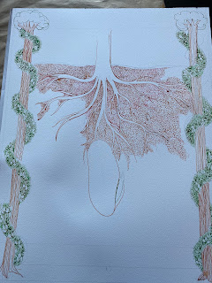 The roots are better but I'm finding this image boring and I don't like the border. I thought I'd fill the underground with ants and beetles but, no, I decided not. I really like ants and beetles but I'm imagining my friends finding them in a Christmas card. So no bugs.